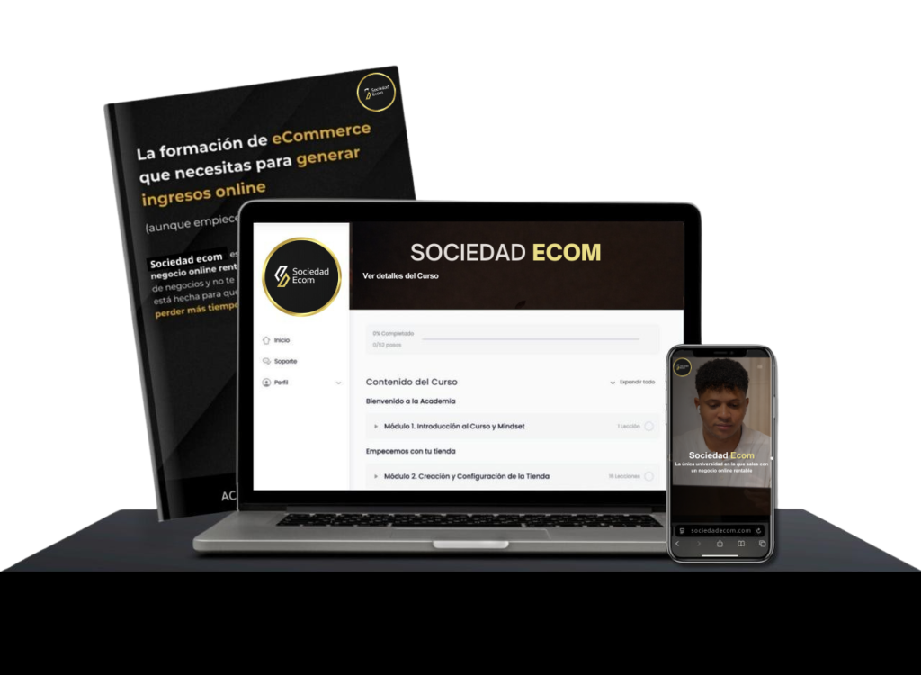 En Sociedad Ecom, te llevamos paso a paso desde el inicio absoluto hasta el éxito en el mundo del Ecommerce. Aprenderás los pilares fundamentales y todo lo que necesitas para lanzar tu proyecto con confianza, desde el punto 0 hasta el 100.